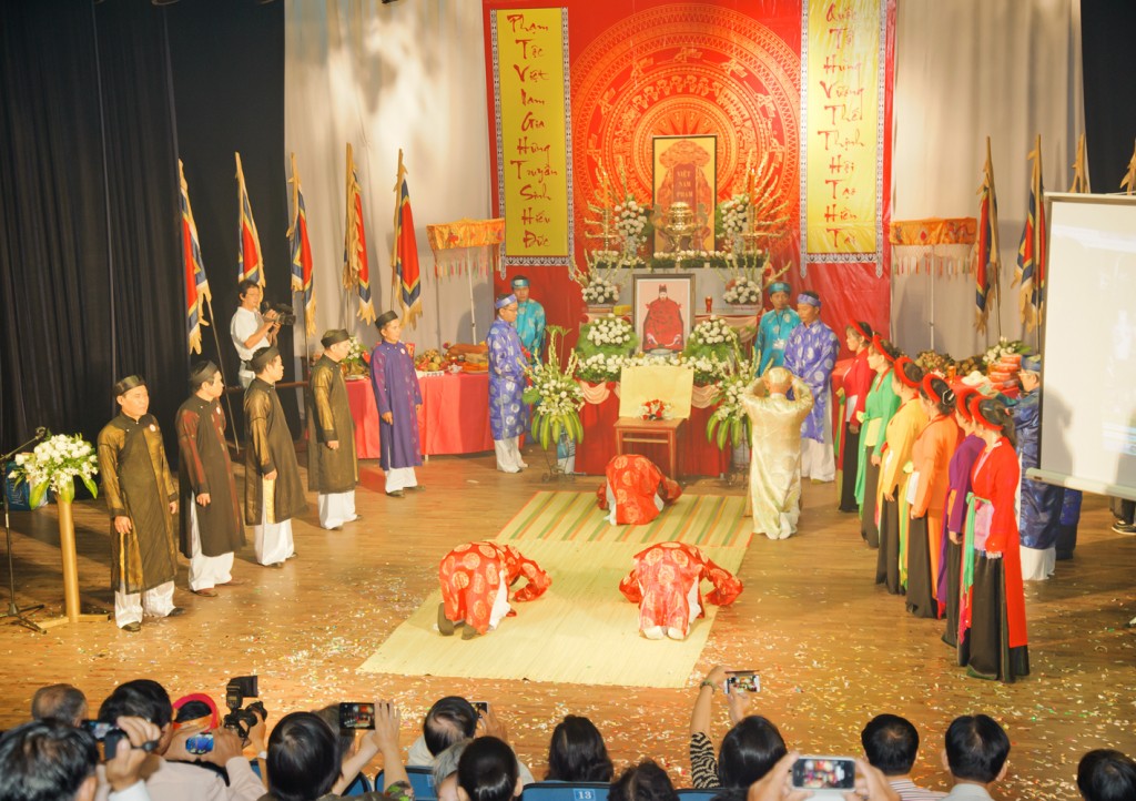 Ngày Giỗ Tổ 17.8.2014Ngày Giỗ Tổ Họ Phạm đã được tổ chức trong không khí trang nghiêm long trọng, với sự hội tụ của rất đông đảo bà con, con cháu nội ngoại dâu rể gần xa từ khắp nơi cùng về tham dự. Nghi thức tế lễ vẫn theo như thông lệ hằng năm, nhưng những nhân tố mới lạ đã lưu lại trong lòng bà con rất nhiều cảm xúc. Đó chính là bản hợp xướng THƯỢNG THUỶ TỔ PHẠM TU do chính nhạc sĩ Mai Phạm sáng tác và từ nước Úc về đây để trực tiếp dàn dựng dưới sự điều khiển của ca trưởng Lê Thị Minh Tiên, cùng với 3 ca đoàn cùng 80 người. Cả khán phòng yên lặng lắng nghe trong niềm cảm xúc khi tiếng nhạc vừa cất lên và kết thúc bằng những tràng vổ tay không muốn dứt.